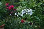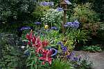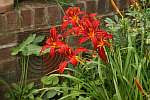 Hemerocallis 'Berlin Red'.Two visitors in the garden.Crocosmia 'Lucifer' and Lilium lancifolium 'Splendens'.Persicaria amplexicaulis 'Firetail'.Clematis 'Warszawska Nike'.Alstroemeria 'Indian Summer'.Zauschneria californica.Bumble in the front garden.