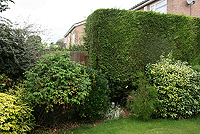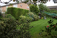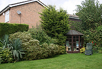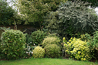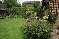 A new design for an existing garden where a number of plants — mainly shrubs and trees — were to be retained. Some new features included a small secluded sitting area where the morning sun could be enjoyed and a space to accommodate compost bins. There were to be plants for year-round interest.